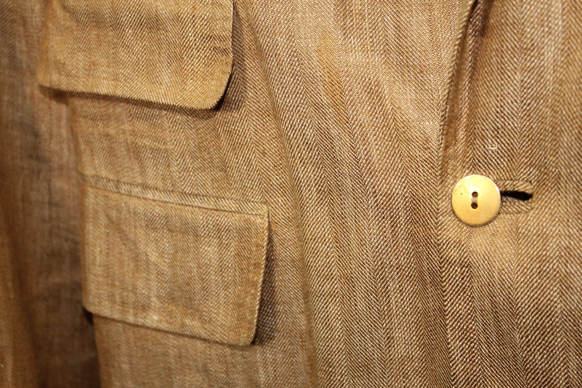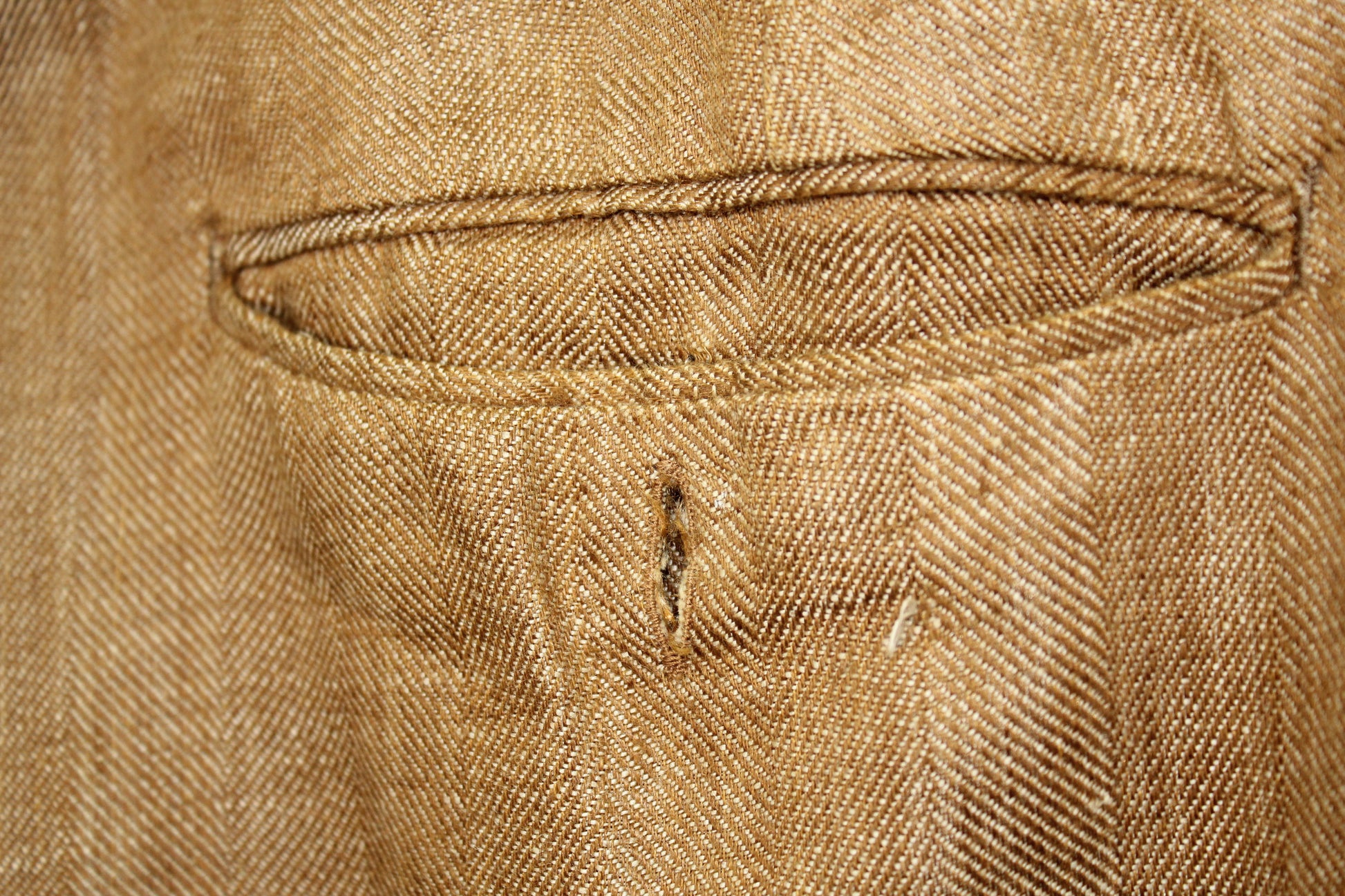 NOTAS: LIGERAS MANCHAS EN EL SACO Y PANTALON, UN LIGERO DESGASTE EN EL CUELLO DEL SACO, FALTA BOTÓN DE BOLSILLO TRASERO DEL PANTALÓN. VER FOTOS PARA REFERENCÍA.